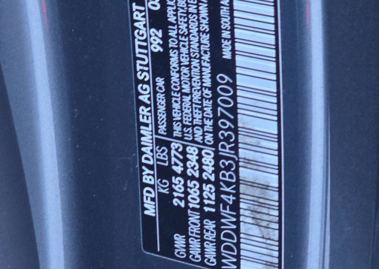 VIN #WDDWF4KB3JR397009