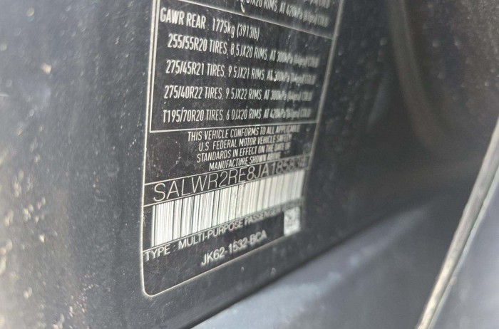 VIN# SALWR2RE8JA185834