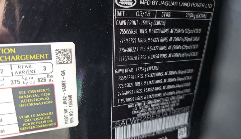 VIN# SALWR2RE9JA199046